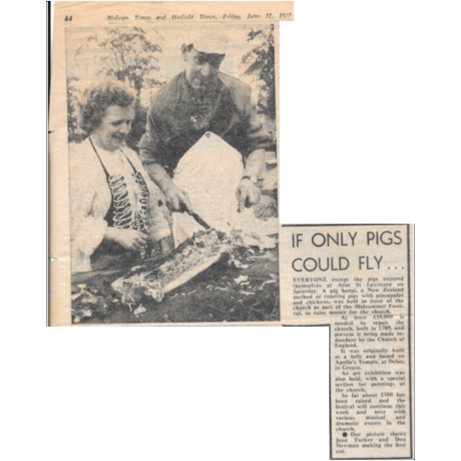 - A competition within the Art Show for the picture most representing Ayot St Lawrence. Votes were cast by visitors putting pennies in jam jars (a good fund raiser in itself!) and the winner the first year was the show’s organiser; Liz Ayliffe’s painting of the Ruined Church! Liz was a talented artist and sculptor in her own right – hence her interest in organising the Show for the village.