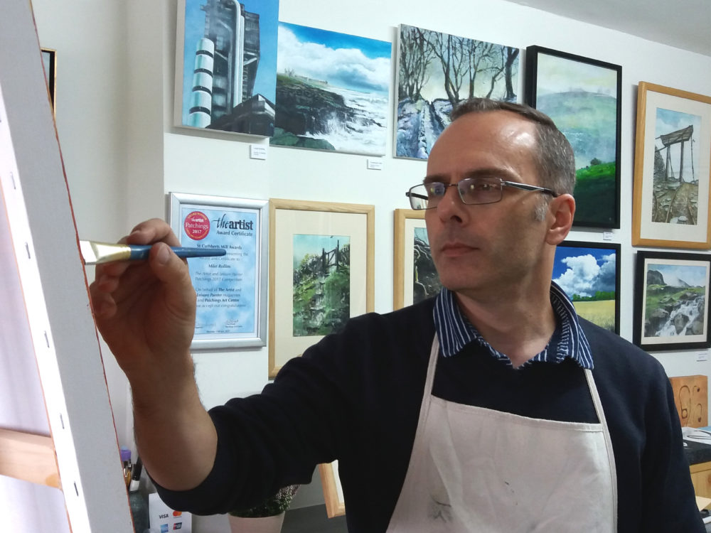 Mike's influences are diverse and include a love of Gainsborough’s pastoral scenes, John Martin’s Biblical epics and Ashley Jackson’s atmospheric skies, fused with an enthusiasm for film, all of which filter through to his brush work. Trained as a scenic designer, Mike looks to bring out the drama in a scene.